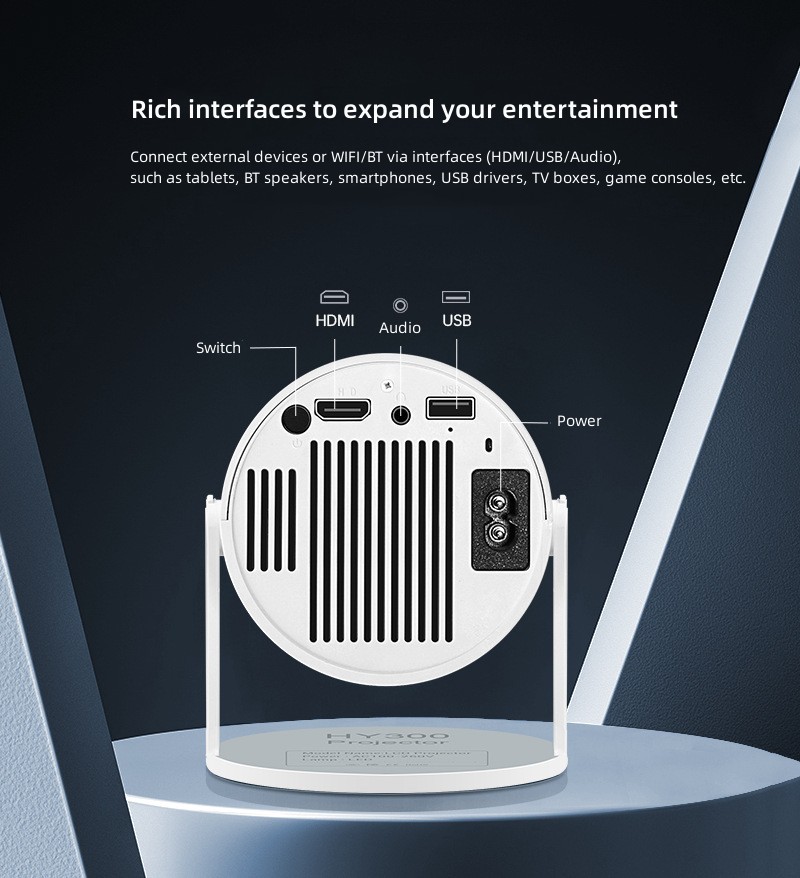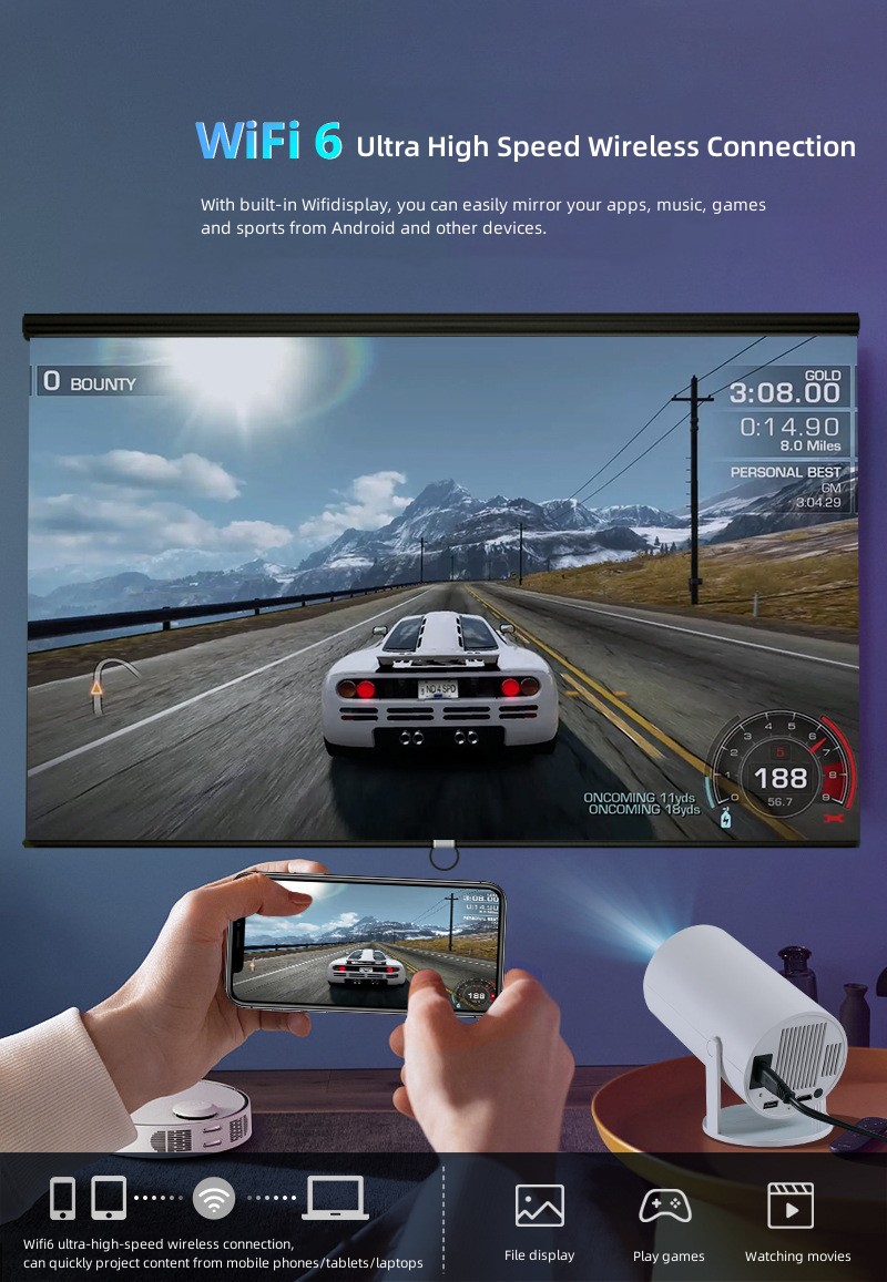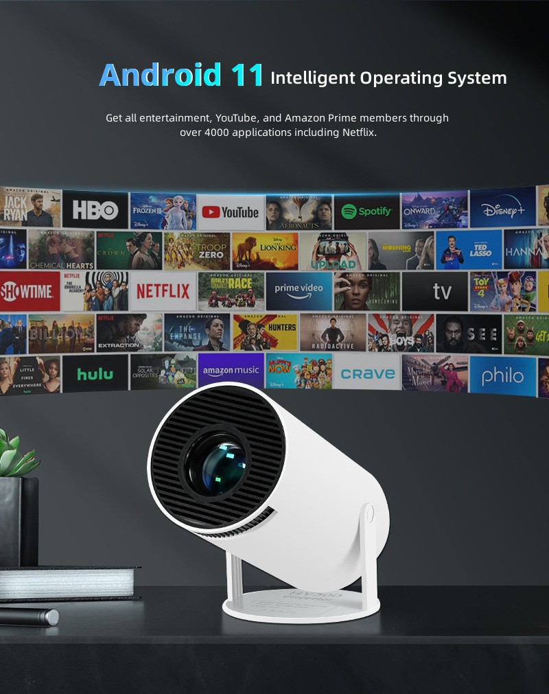 Android HY300 Portable Small HD Wifi Projectors Input Source 4K Mini Vedio Projector DT-2812
