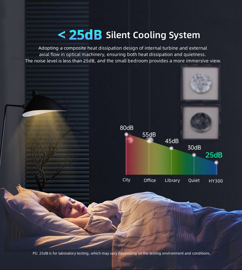 The noise level is less than 25dB, and the small bedroom provides a more immersive view.