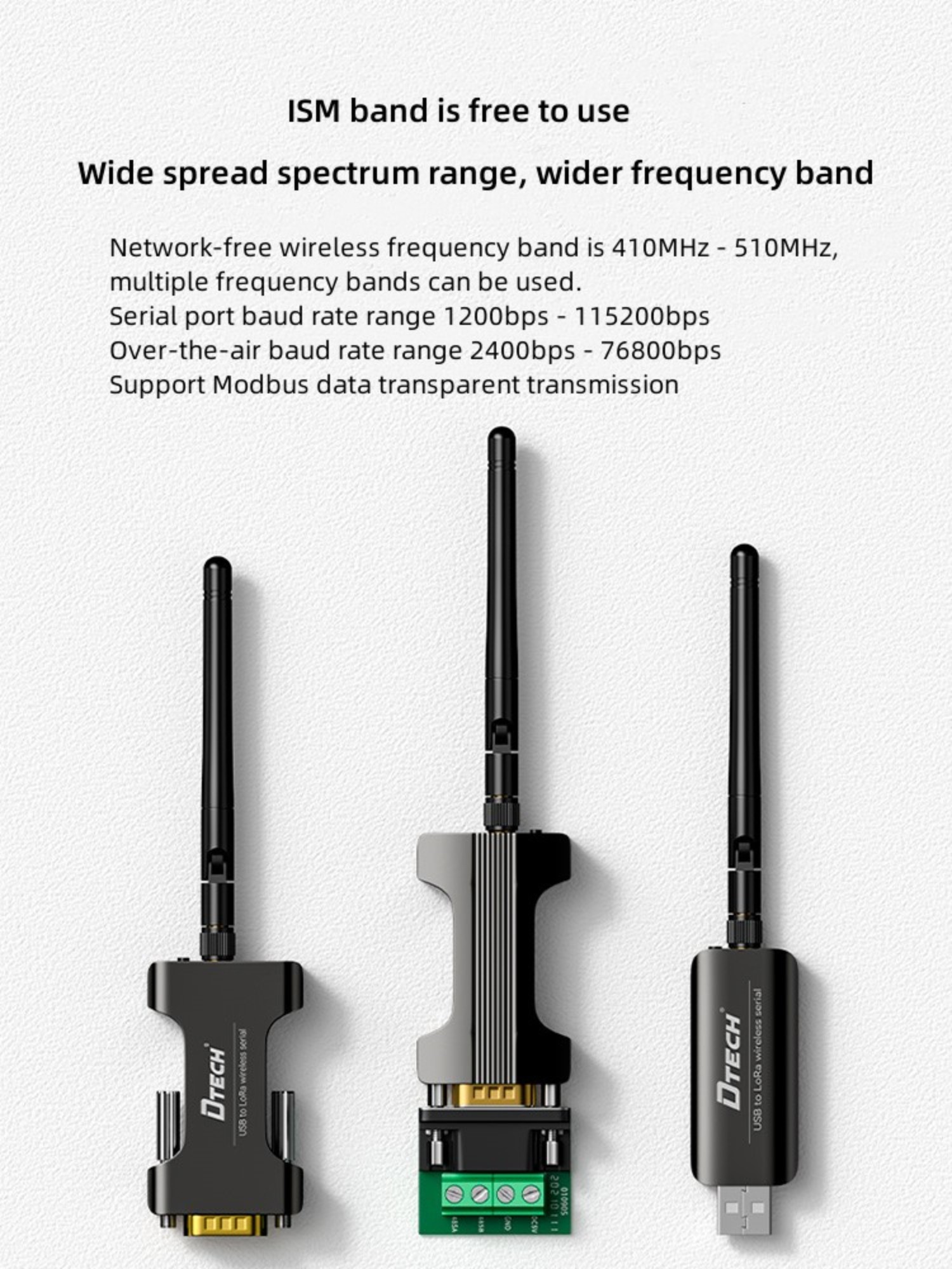 DTECH 4km Uzun Menzilli Simsiz Serial TPUNB Transceiver RS232 - LORA Simsiz Seriya Məlumat Ötürücü