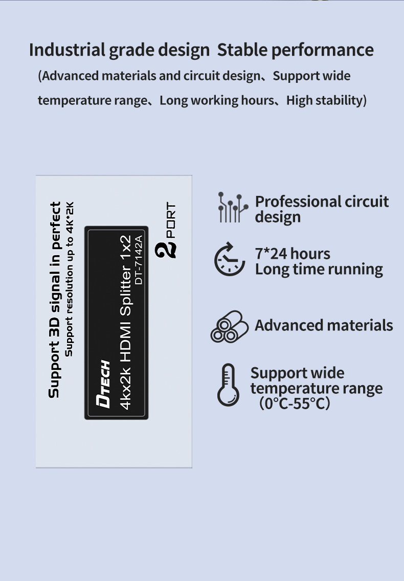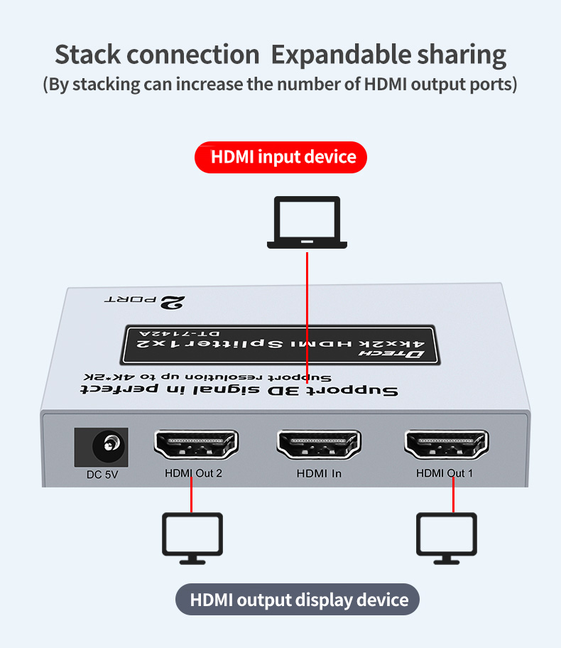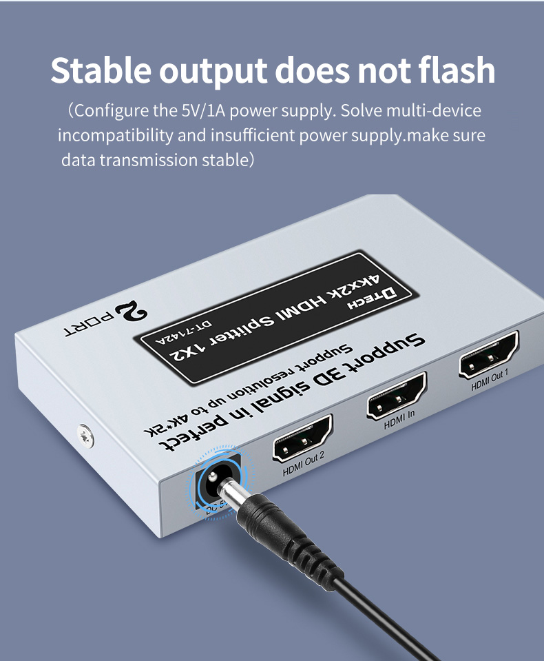 1*2 splitter is the perfect solution for anyone who needs to send one video signal to 2 displays at the same time. HDMI Splitter offer solutions for monitors or projectors retail, and Projector factory, noise, space and security concerns, data center control,information distribution, conference room presentation, school and corporate training environments.