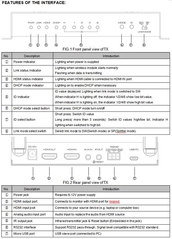 4. Support one sender to one receiver, one sender to four receivers, four senders to one receiver, three transmission methods.