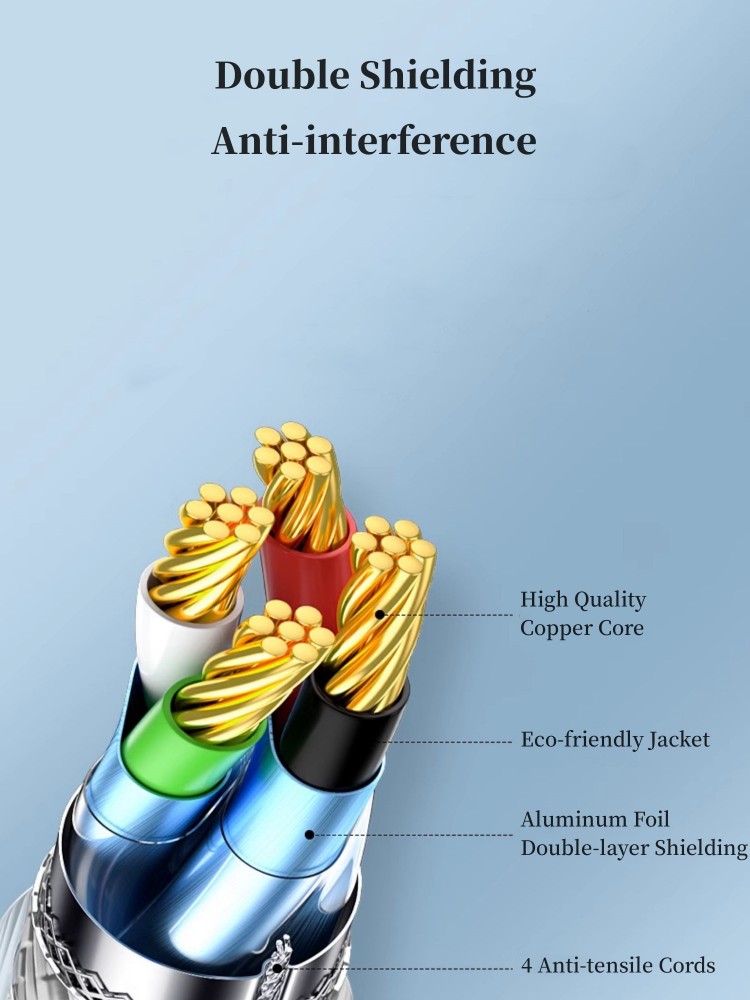•Using this double shielded cable to protect your data from EMI and RFI noise interference.