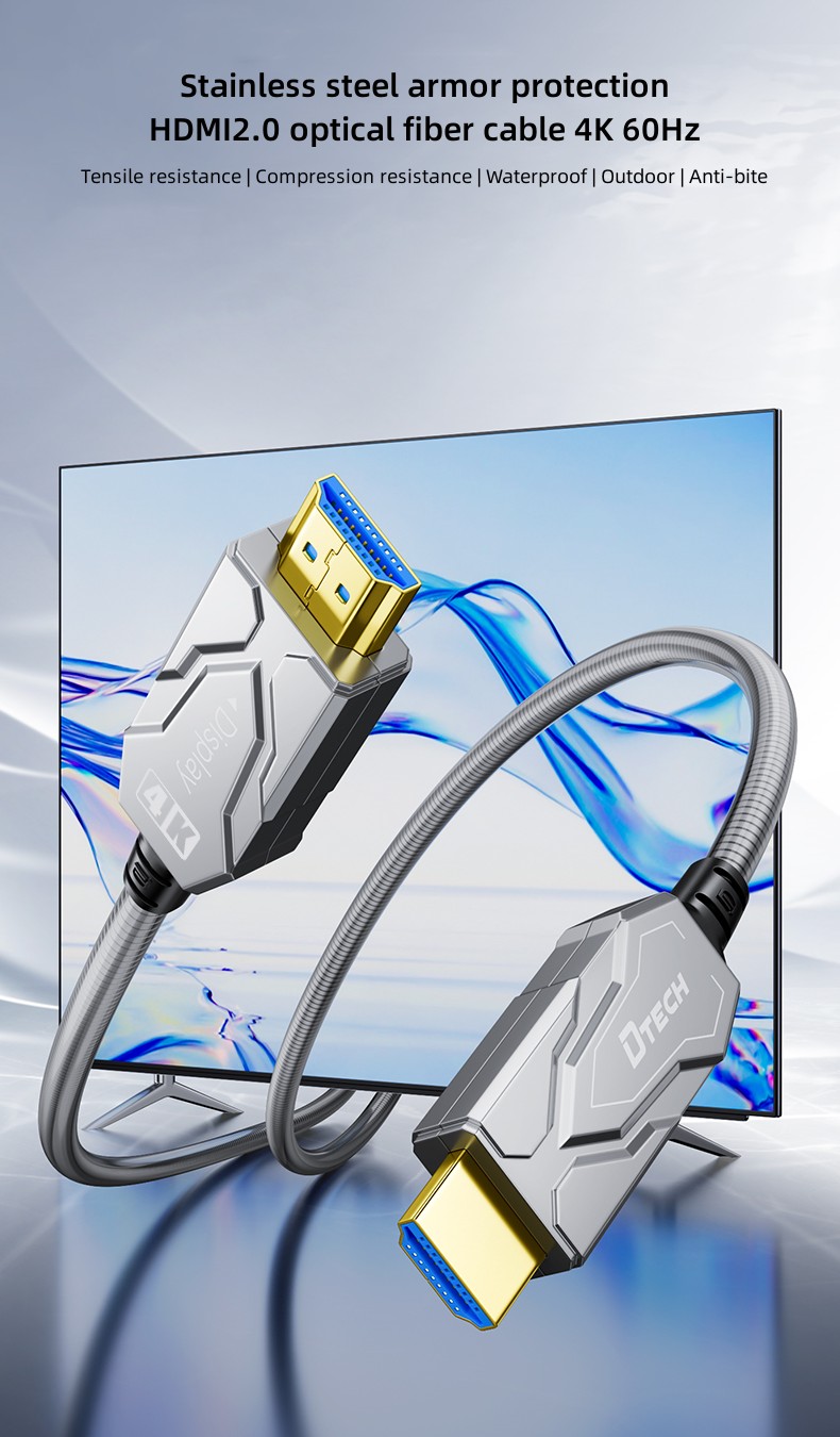 DTECH 2m 3m 5m 10m HDMI Cable Version 2.0 4K 60Hz Resolution HD Data Cable HDMI Armoured Fiber Optic Cable