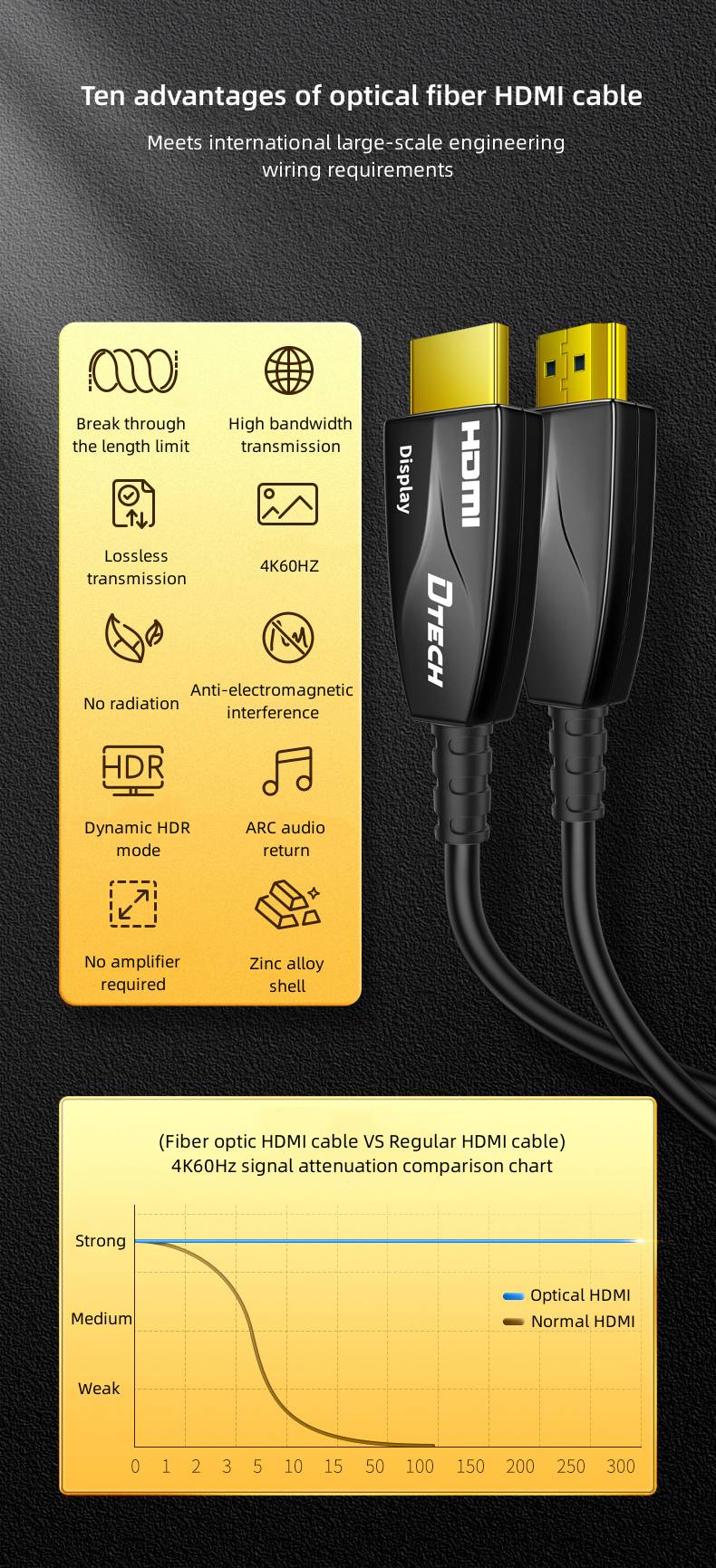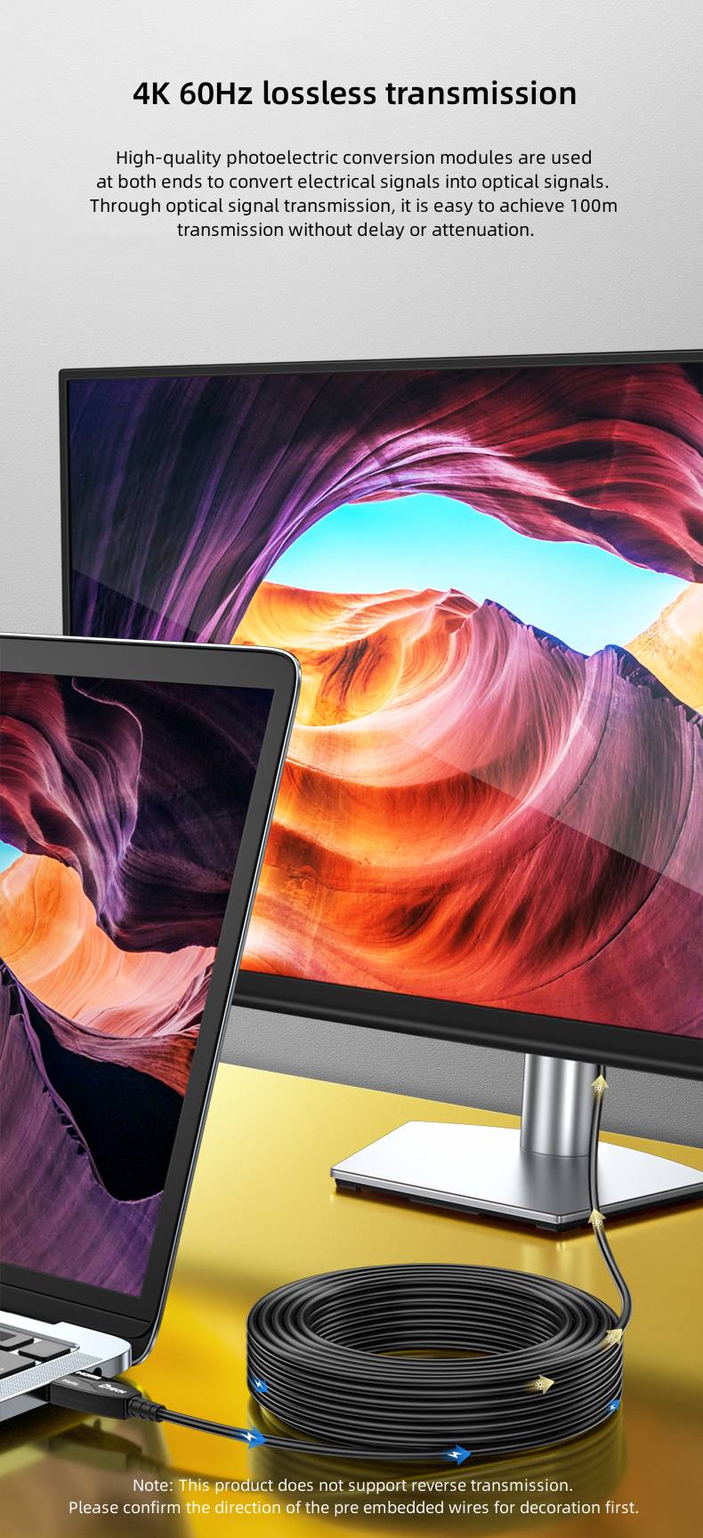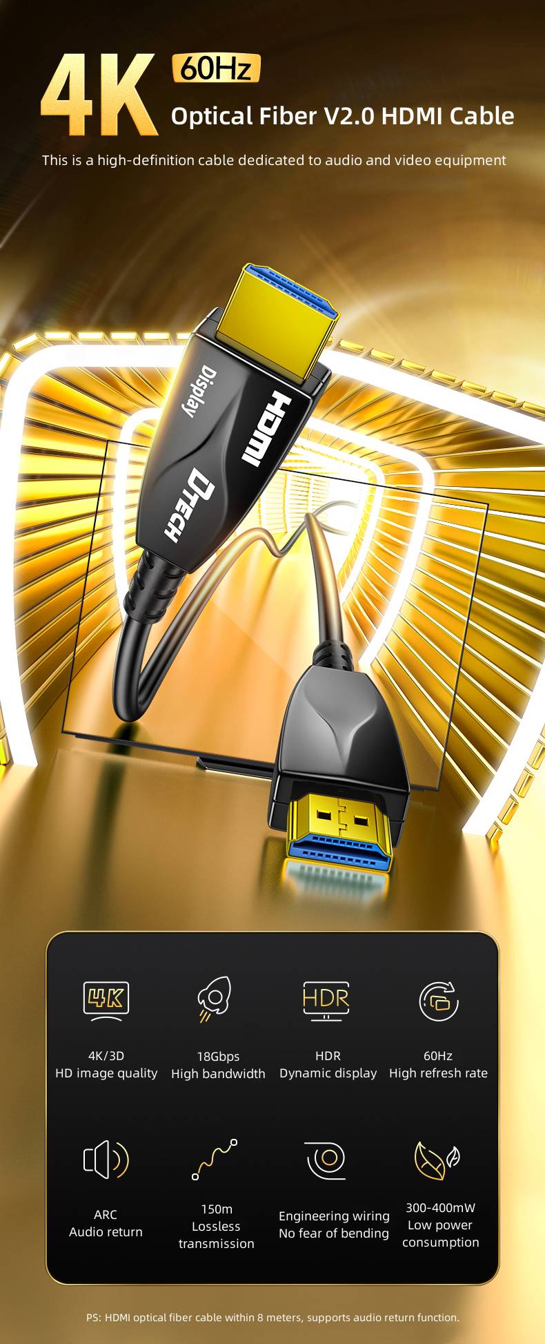 PS: HDMI optical fiber cable within 8 meters, supports audio return function.