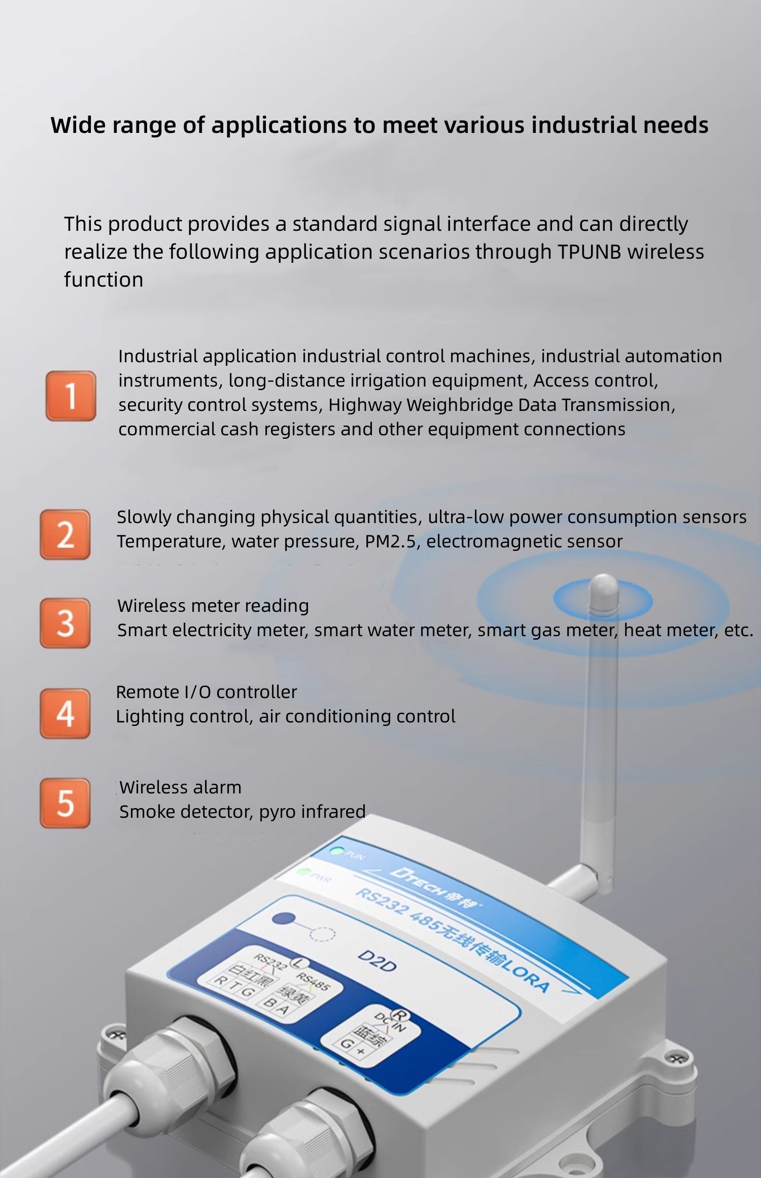 This product provides a standard signal interface and can directly realize the following application scenarios through TPUNB wireless function