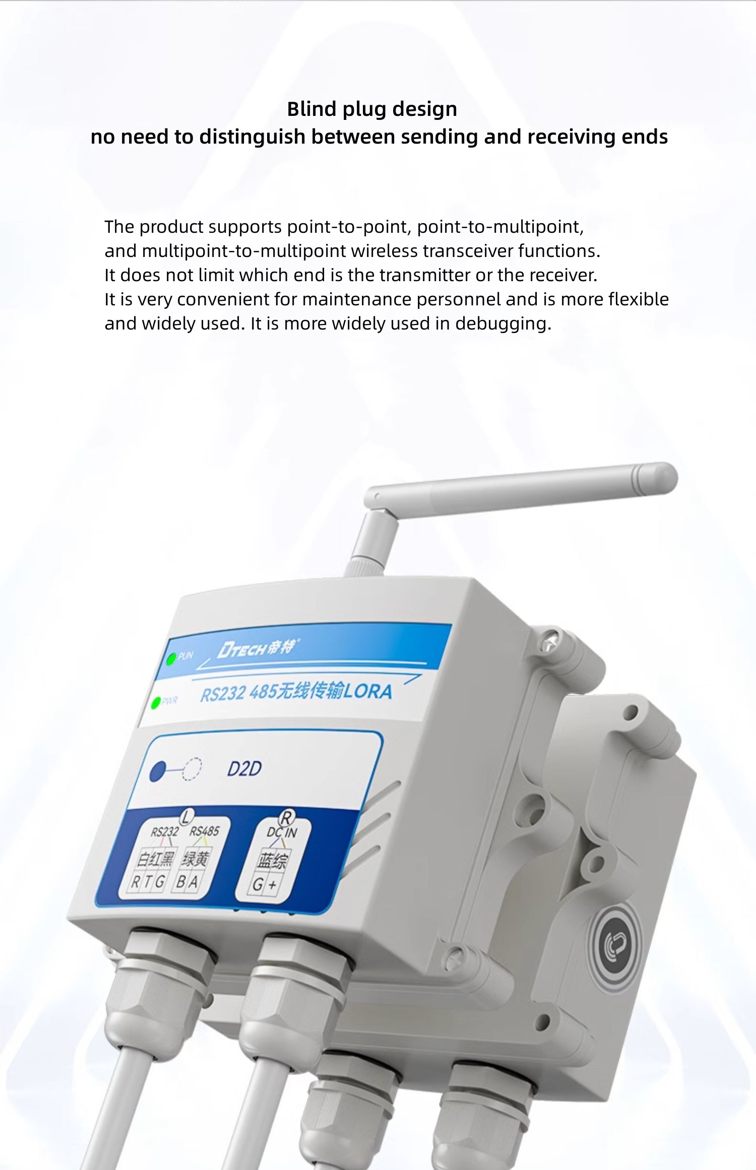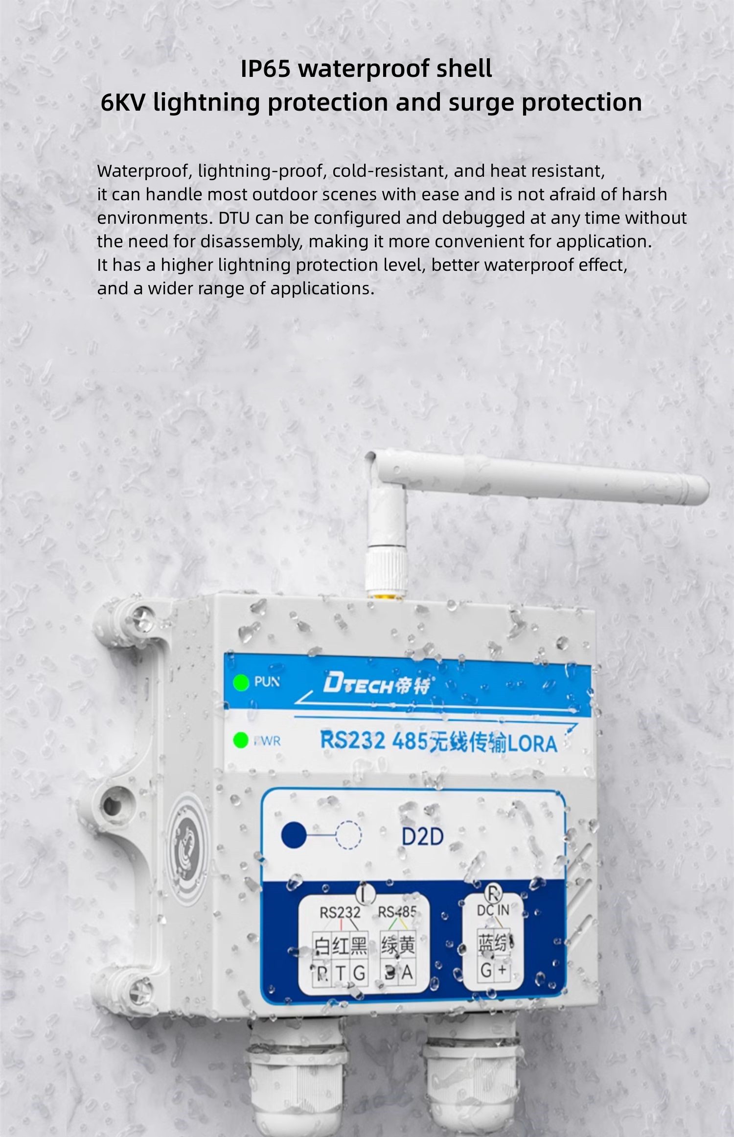 DTECH Waterproof IP65 Data Transfer Serial RS232 RS485 Wireless Transmission Station to DTU TPUNB Converter