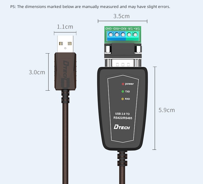 DTECH DT-5019(2nd) USB 2.0 Male to RS485 RS422 Serial Port Device Adapter Converter Extend Cable 0.5m 1.5m