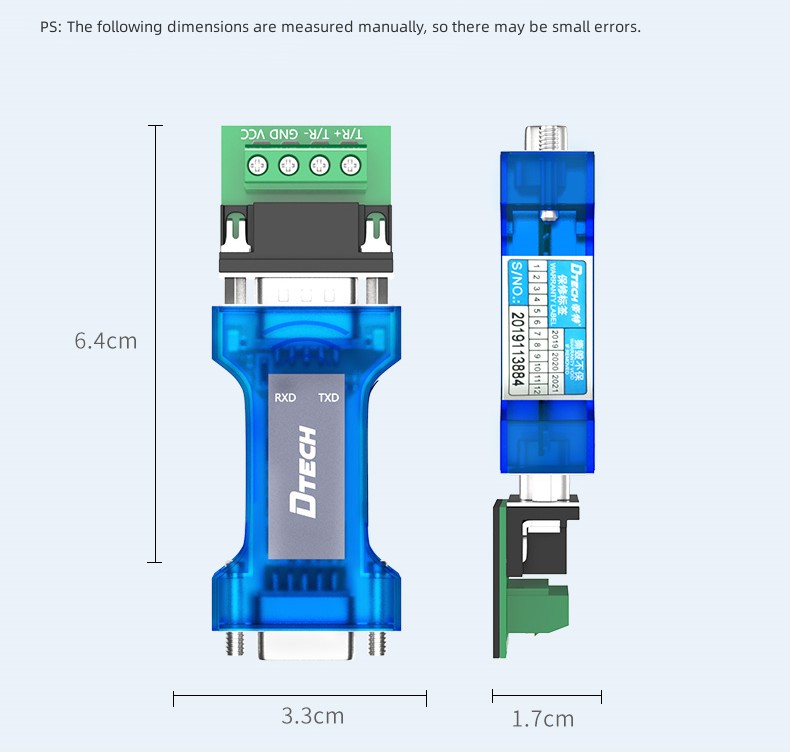 DTECH DT-9004 Industrial Grade Passive RS232 to RS485 Serial Converter Communication Adapter