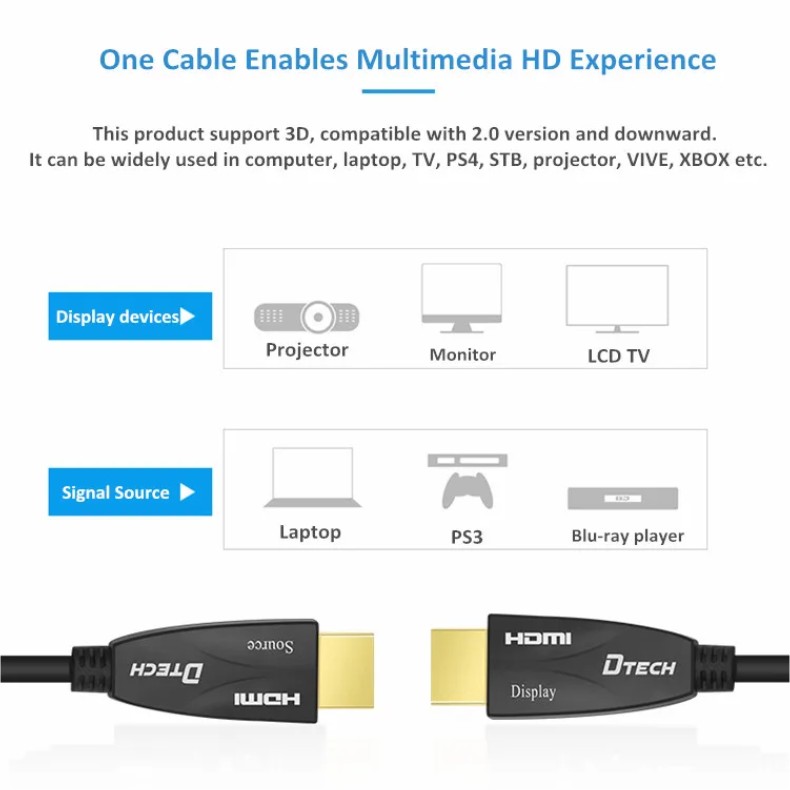 DTECH Engineering Grade HDR 3D Cavo 4K 60Hz HD Male to Male Video Audio Cables HDMI 2.0 Fiber Cable for Monitor