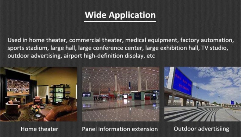 Used in home theater, commercial theater, medical equipment, factory automation, sports stadium, large hall, large conference center, large exhibition hall,