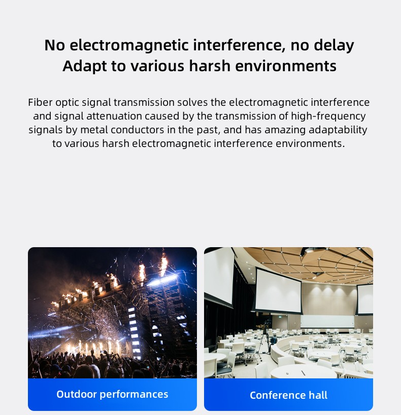 Fiber optic signal transmission solves the electromagnetic interference and signal attenuation caused by the transmission of high-frequency signals by metal conductors in the past,