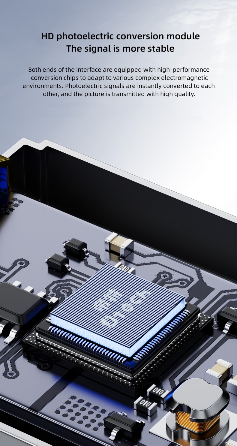 Both ends of the interface are equipped with high-performance conversion chips to adapt to various complex electromagnetic environments.
