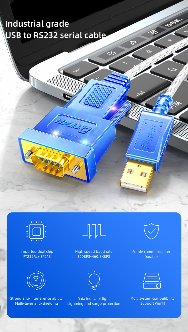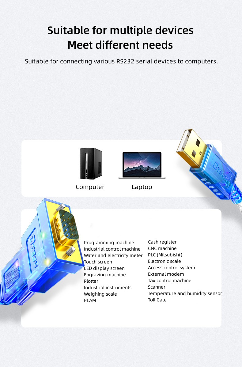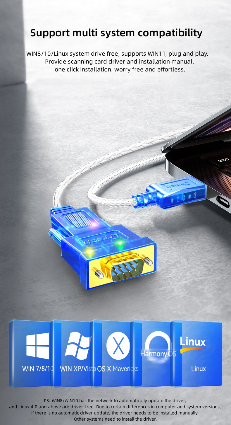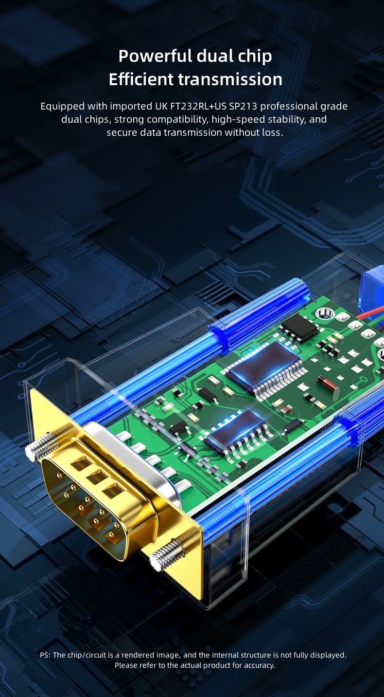 Equipped with imported UK FT232RL+US SP213 professional grade dual chips, strong compatibility, high-speed stability, and secure data transmission without loss.