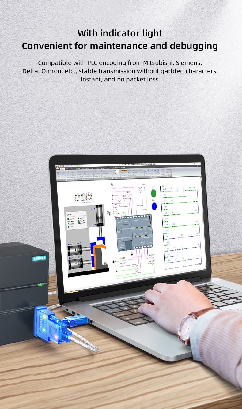 Compatible with PLC encoding from Mitsubishi, Siemens, Delta, Omron, etc., stable transmission without garbled characters, instant, and no packet loss.