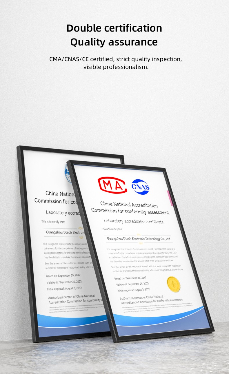 CMA/CNAS/CE certified, strict quality inspection, visible professionalism.