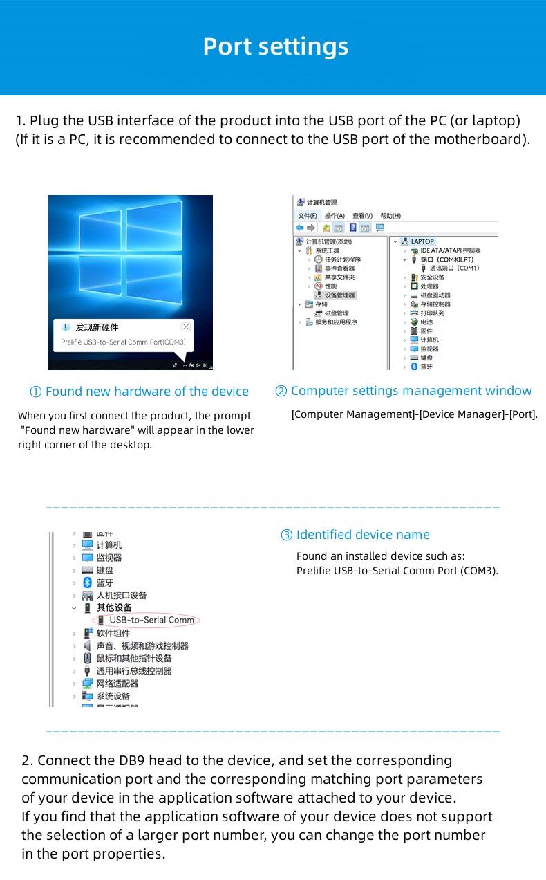 1. Connect the product to the USB port of the computer. You can see an unknown device in [Device Manager]-[Other Devices]. At this time, you need to install the product driver first, and then set the port.