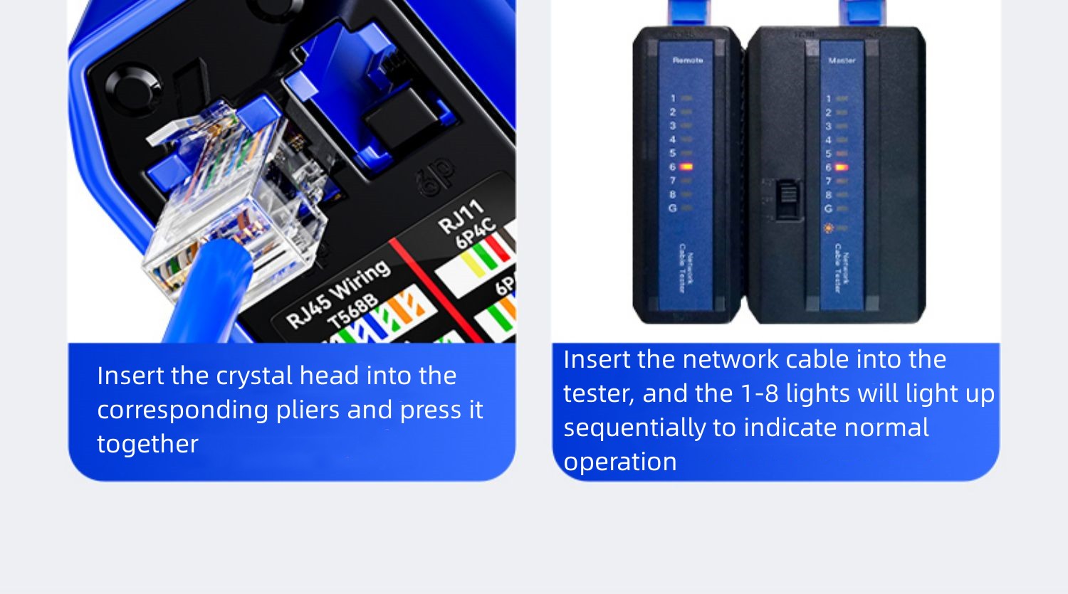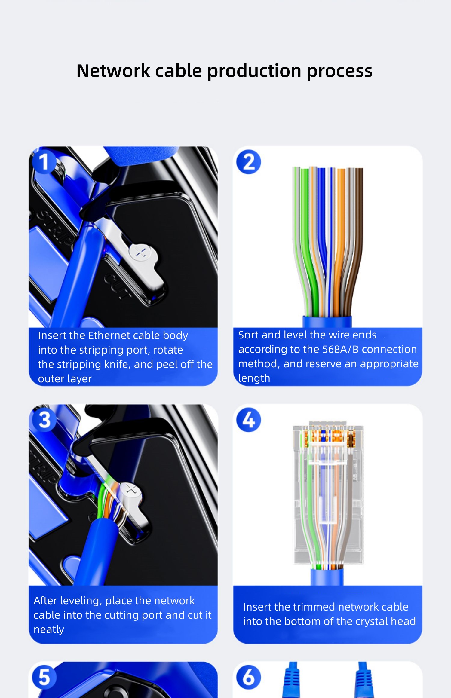 ʻO ka lua, 'o ka 3-in-1 network cable pliers no hoi ka hana o ke oki uea.Ma hope o ka pae ʻana, e kau i ke kaula pūnaewele i loko o ke awa ʻoki a ʻoki pono.