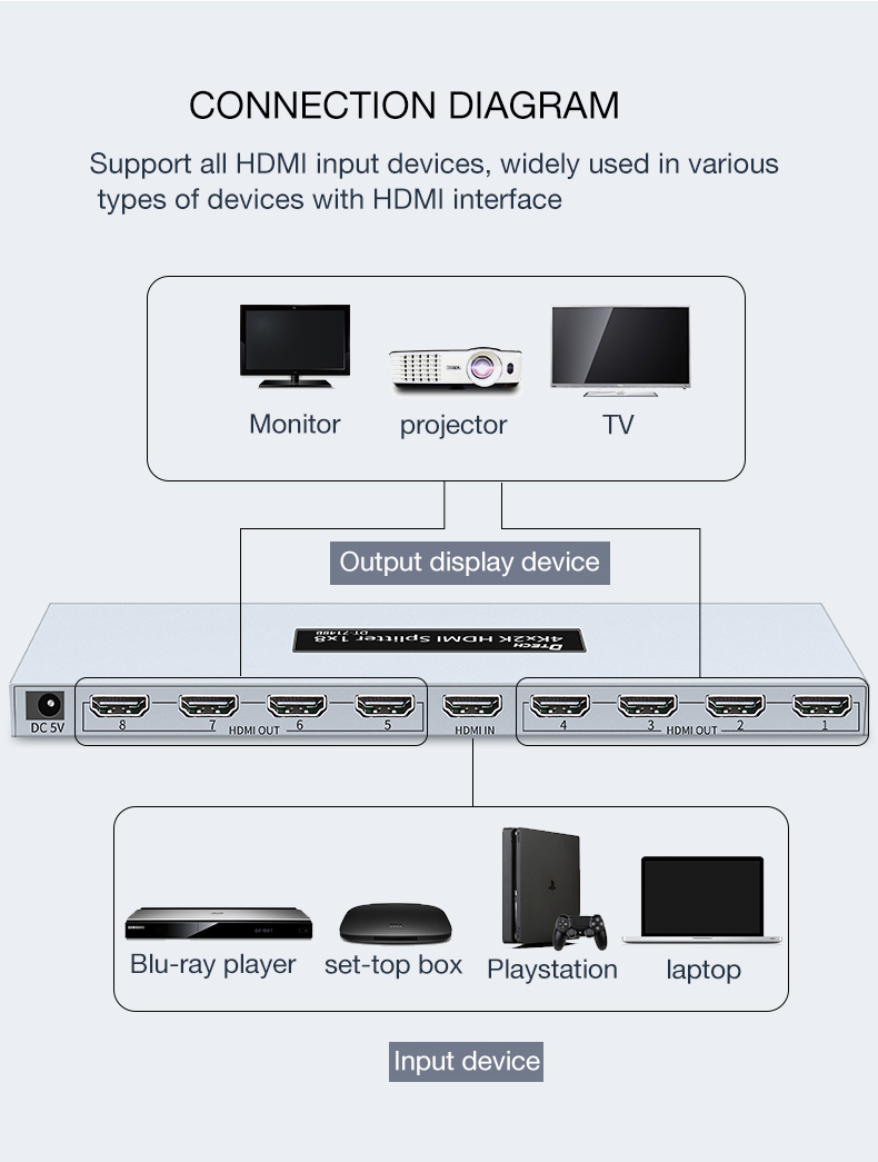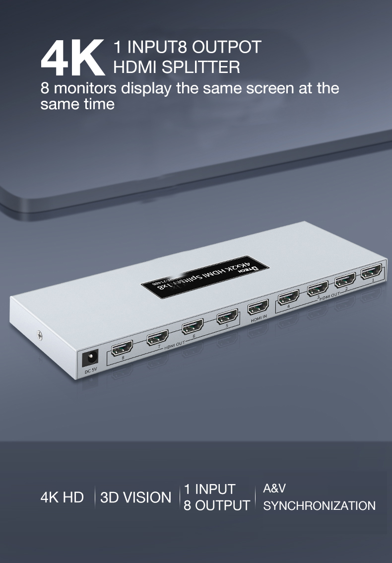 HDMI Splitter 8 port 1 In 8 Out 1×8 Port 4k Tv Hdmi Splitter