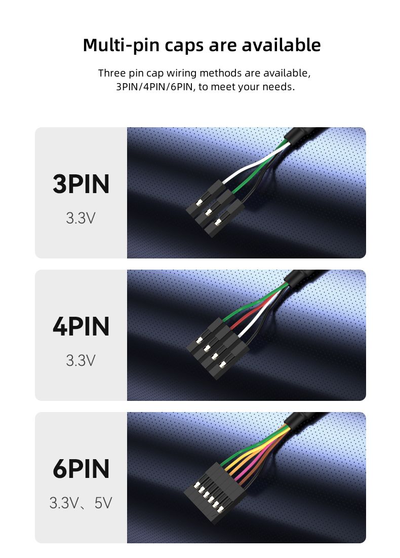 usb to ttl uart module serial cable uses 4 pins for connection and supports 3.3V level, which is suitable for the communication needs of many embedded devices and Internet of Things devices. Its compact design and convenient connection method enable users to easily access the target device for quick debugging and data transmission.