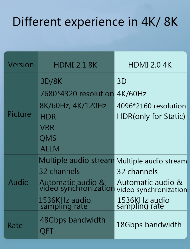What sets these HDMI cables apart is their bandwidth: the amount of information they can carry at any given time. HDMI 2.0 cables provide 18 Gbps (gigabytes per second) connection speeds, while HDMI 2.1 cables provide 28 Gbps connection speeds. No wonder HDMI 2.1 cables are more expensive. they are worth it
