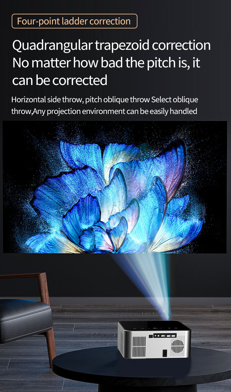 Quadrangular trapezoid correction. No matter how bad the pitch is, it can be corrected. Horizontal side throw, pitch oblique throw. Select oblique throw, any projection environment can be easily handled.