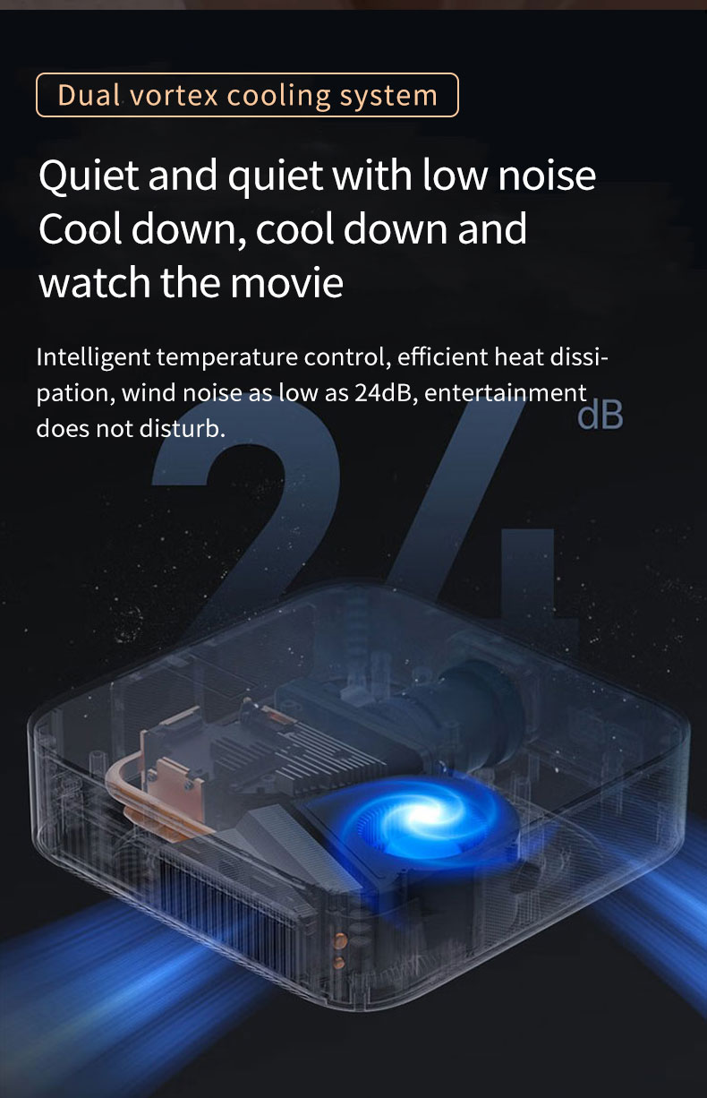 Quiet and quiet with low noise. Cool down and watch the movie. Intelligent temperature control, efficient heat dissipation, wind noise as low as 24dB, entertainment does not disturb.